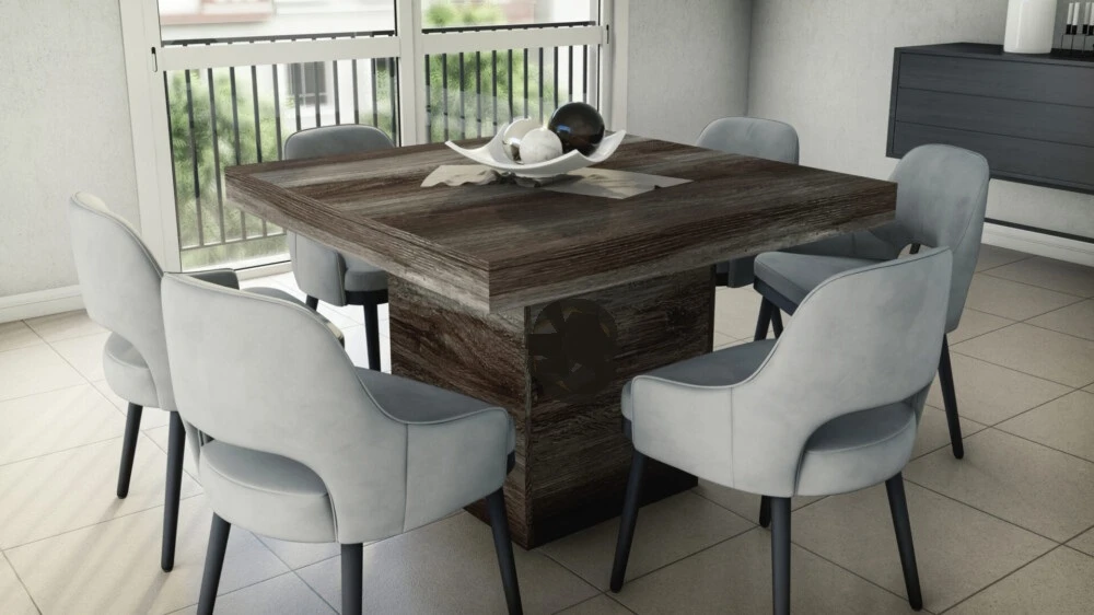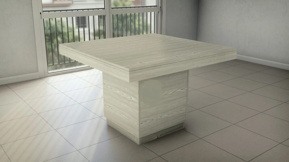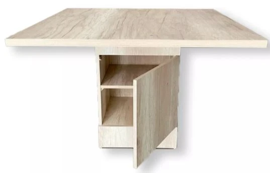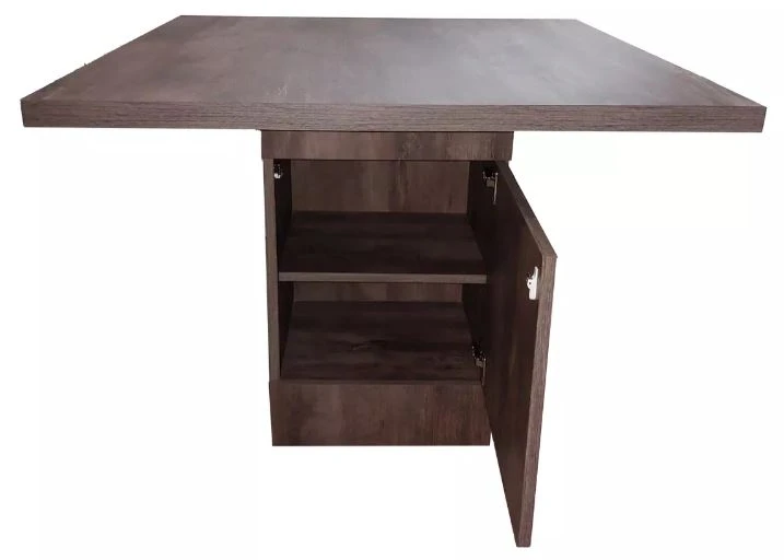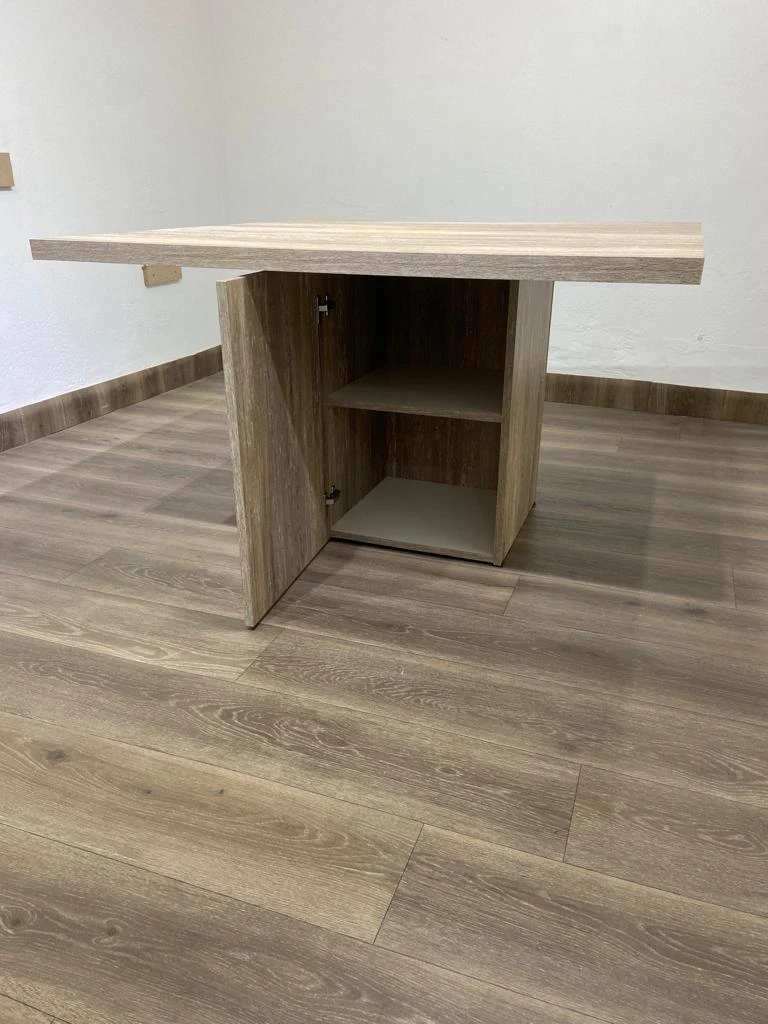 Mesa cuadrada, con mueble de guardado, medidas 120 x 120.