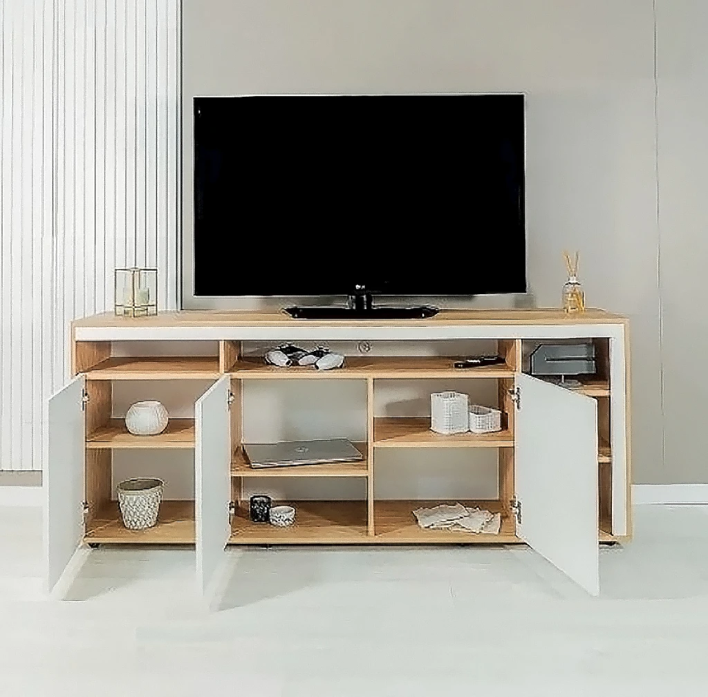 Rack TV 3 Puertas, medidas: 150 frente x 90 alto x 35 prof.