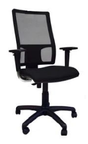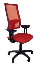 Con respaldo alto de tela Mesh con sistema Flexor, con riñonera y apoyo lumbar para la parte baja de la espalda, giratoria, regulación de altura neumática, con apoyabrazos metálicos (también opción sin apoyabrazos).